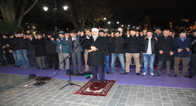 ABD Başkanı Donald Trump’ın Kudüs’ü İsrail’in başkenti ilan etmesinin ardından İstanbul Gençlik İnisiyatifi Ayasofya Meydanı’nda protesto gösterisi düzenledi. Sultanahmet Cami’sinde kılınan yatsı namazı sonrasında çok sayıda vatandaş ellerinde Türk ve Filistin bayraklarıyla Ayasofya Meydanı’nda toplandı. “Kudüs Müslümanlarındır”, “Katil İsrail işbirlikçi ABD” yazılı pankartlar taşıyan grup İsrail ve ABD’yi protesto etti. Kur’an-ı Kerim tilavetiyle başlayan eylemde çeşitli dernek ve kurumların temsilcileri konuşma yaptı. Konuşmaların ardından Ayasofya Meydanı’nda Sultanahmet Camii İmamı Hasan Kara tarafından vitir namazı kıldırmasıyla sonlandırıldı.