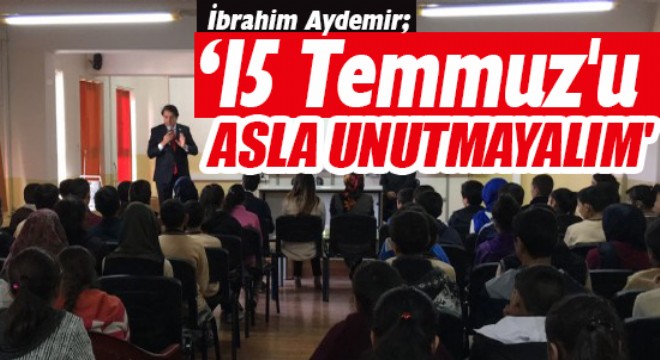 Siyasi partilerin millete hizmet için kurulduklarını, milleti temsil ettiklerini ve böyle zor dönemlerde hepsinin bir araya gelebileceğini de gösterdiklerinin de altını çizen Aydemir, “15 Temmuz bir yönüyle yeniden bir milli mücadelenin, vatanımızı işgale kalkışanlara bütün bir milletin ayağa kalkarak tepki verip zafer kazandığı gün olarak da hatırlanacaktır. Ve tabii, genç beyinlerin yani çocuklarımızın, gençlerimizin aslında milli yerli anlayışa zihinlerinin denli açık olduğunu gösteren bir tarih de olmuştur 15 Temmuz. Bunun tarihten gelen bir özelliğimiz olduğunu da böylece bir daha hatırlamış olduk.” kaydını düştü.