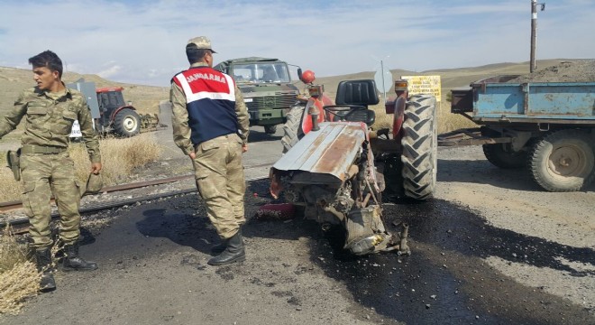 Horasan ilçesinde yolcu treninin çarptığı traktör de sürücü hayatını kaybetti.