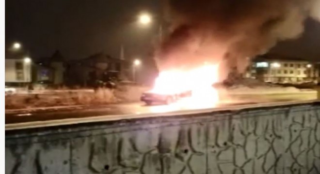 Erzurum’da seyir halinde olan bir araç henüz sebebi bilinmeyen bir nedenden dolayı aniden alev aldı. Araç şoförü saniyelerle araç içerisinden çıkarak canını kurtarırken otomobil kullanılamaz hale geldi.