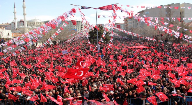 Yeni sistemde tek adam eleştirilerine de yanıt veren Bahçeli, “Tek adamdan bahsediyorlar. 16 Nisan’da evet çıkması durumunda tek adam sisteminin geleceğini uyduruyorlar. Sandıktan diktatör çıkacak diye korku yayıyorlar. Diktatör nedir, tek adam nasıl olacak diyoruz, kaçacak yer arıyorlar. Zira bilmiyorlar. Rejim değişecek diye tek ayaküstünde kırk yalan savuruyorlar. Sistem başka, rejim başka şeydir; değişecek olan yalnızca hükümet etme sistemidir diyoruz, bön bön bakıp gözleriyle fel fecir okuyorlar. Muhtarlıkların bile kapatılacağını söylüyorlar. Lokantalara bir kararnameyle kilit vurulacağını iddia ediyorlar. Gelin şunu bir anlatın, neye dayanıyorsunuz, niye boş konuşuyorsunuz diyoruz; anında Mustafa Kemal’in askerleriyiz sloganına sığınıp kazın yanmaması için durmadan çeviriyorlar. Anayasa’nın ilk dört maddesini Bahçeli’ye sorun diyorlar. Elbette bana soracaklar, ama verdiğim, verdiğimiz ödünsüz ve yeminli cevapları anlayabilecek ne yürekleri ne de zekâlarından en ufak iz görülmüyor. Doluya koyuyorlar almıyor, boşa koyuyorlar dolmuyor. Çünkü dağda bağları yok, çakaldan davaları yok. Fakat bizim vardır, bizim Türkiye’ye pusu kuran, Türk milletine ömür ve kefen biçen bütün alçaklardan sonuna kadar alacağımız vardır, Bozkurt’un da töresi ortadadır. Sayın Kılıçdaroğlu hayır diyor demesine de, neye, niçin, niye hayır dediği belirsizdir. Bu Kılıçdaroğlu değil mi ki 16 Nisan’dan sonra cumhurbaşkanı başka bir partinin, başbakan başka bir partinin genel başkanı olursa kavga o zaman çıkacak diyen. Zavallı, daha anayasa maddelerinde neyin yazdığını bilmiyor. Başbakanlığın kalktığını öğrenememiş. Aziz milletimizin karşısına çıkıp anayasa anlatıyor, ne var ki daha ne anlattığının sırrına erememiş. Bu kafanın hayırında hayır olur mu? Cevap veriyorum, kesinlikle olmaz. Bilmediğini bilmeyen, savunduğunu özümsememiş bir siyasetçinin sözüne güven duyulur mu? Elbette duyulmaz. CHP’nin 15 Temmuz’dan şikâyetçi olduğuna yakınlarda hiç şahitlik edilmedi. Allah için 15 Temmuz’da Özel Kuvvetlerde destan yazan kahraman şehidimiz Ömer Halisdemir’e ve de 248 şehidimize en küçük bir şükran ve minnet duygusu göstermiyorlar. Üstelik OHAL’dan rahatsızlar. Hatta OHAL’i darbe görüyorlar. Anlaşılan akılla, ahlakla aralarını kapanmamak üzere açmışlar. Sanki yüzlerinde alın derisi değil, davul derisi var. Ne söylesek nafile. Zannedersiniz başka gezegenden gelmişler, başka diyarlardan göçmüşler. PKK’nın peşine takılmışlar. FETÖ’nün kılıcını sallıyorlar. PYD-YPG’ye övgüler düzüyorlar. Avrupa’nın muhbiri gibi davranıyorlar. Türk milletinin tarihi hakkına sahip çıkması zorlarına gidiyor. Yol yakınken vazgeçelim demiyorlar. Yorgan gitmeden kavga bitsin diyemiyorlar. Bunlarda ne utanma var ne de milli uyanışın emaresi. Bunlarda ne akıl var ne de milli şuurun tortusu. Bunların rehberi yalan, ezber ve tezleri ahlaki talandır. İnanıyorum ki yürüyüşümüzün önüne taş koymak isteyenler 16 Nisan’da kaybedecektir. Ve Erzurum 16 Nisan’da bunlara tokadı vuracak, çuvala doldurup sandığa koyacaktır. Yerli, milli ve ahlaki bir uzlaşmayla; üstelik tamamıyla iç dinamiklerle temellenmiş sistem değişikliğini hazmedemeyenler dağılacaklardır” dedi.