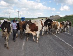 KARS (İHA) - Hayvanlarının mera alanlarında otlatılmasına izin vermeyen köy muhtarına kızan besici, yol kapatıp eylem yaptı. Kars Merkez Subatan köyünde hayvancılık yapan Şefik Kaya, Bursa’dan getirdiği 25 büyükbaş hayvanını köyünde otlatamayınca çareyi turistik Ani Harabeleri yolunu trafiğe kapatarak aradı. Kendisine ait ineklerin üzerine ‘açlığa mahkum’ yazılı pankart asan Kaya, yetkililerden konuyla ilgili yardım istedi.