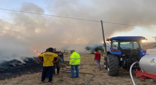 Meydana gelen yangında Mehmet Taştan’ın hayvanları için yaz aylarında büyük emeklerle biçip topladığı 4 bin balya ot küle döndü.