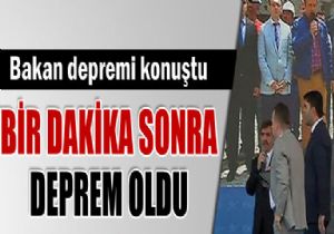 Çevre ve Şehircilik Bakanı İdris Güllüce, “Depremle ilgili konuştuk, 1 dakika sonra deprem oldu. Tarihe geçti bu. İyi sallandık” dedi.