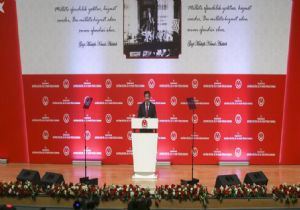 Türkiye'nin bu hafta G20 Zirvesi'ne ev sahipliği yapacağını hatırlatan Davutoğlu, "G20 Zirvesi'nde, 100 yıl önce bitti zannedilen bir milletin 100 yıl sonra dünyanın en büyük ekonomilerine ev sahipliği yapması işte muasır medeniyetleri aşma çabasının bugün gerçeğe dönüştüğünü ortaya koyuyor. Eğer her sene bu törenlerde, anmalarda muasır medeniyetleri aşma çabasından bahsetmiş olsaydık bir dogma, bir ideolojik çerçeve olarak, bunun gereğini yapmamış olsaydık belki yine IMF kapılarında bekliyor olacaktık" dedi.