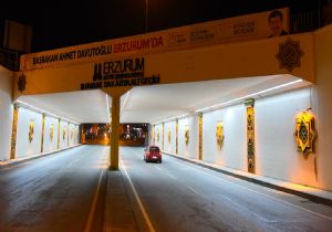 Erzurum Büyükşehir Belediye Başkanı Mehmet Sekmen’in şehir estetiğiyle ilgili direktiflerini uygulama alanlarına yansıtan Büyükşehir’in Mühendisleri, bu kez de alt geçit ve köprülü kavşaklarda aydınlatma çalışması yapıyor. Erzurum Büyükşehir Belediyesi Fen İşleri Daire Başkanlığı tarafından yapılan çalışma kapsamında, Saray Bosna Caddesi’ni Gün Sazak Kavşağı’na bağlayan güzergâhtaki Durak Sakarya Köprülü Kavşağı’nın alt kolları ve iç duvarlarının kaplama sıvalarında tadilat ve boyama gerçekleştirildi. Köprünün taşıyıcı kollarına Selçuklu Yıldızı motifler yapıldı. Köprü taşıyıcılarına yapılan bu rölyeflere LED aydınlatmalarla estetik bir gece görüntüsü sağlandı. Aynı zamanda köprü içi aydınlatma da LED ışıklarla yapılan rölyef çalışmalarına uygun bir şekilde tasarlandı. Ayrıca köprü üst kollarında bulunan demir korkuluklar da tamir edilerek, rölyef çalışmalarına uygun renklerle boyandı.