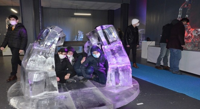 Buz müzesinde yapılan heykelleri şaşkınlıkla izleyen çocukların kimisi buzdan kaydıraktan kayarak eğlenirken kimisi de buzda yapılan piyanoda tuşlara basarak ses çıkmasını beklediler.