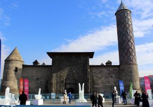 Erzurum Yakutiye Kent Meydanı'nda tarihi figürlerin tasvir edildiği buzdan heykeller sergisi, görenleri kendisine hayran bırakıyor. Winterfest Kış Festivali boyunca sanatçıların büyük emekleriyle şekillendirdiği buz kütleleri vatandaşların ilgi odağı oldu. Birbirinden güzel 12 ayrı eserin yer aldığı sergide buzdan heykellerin arasında tarihi çifte minareler, atlama kuleleri, kümbetler, dev semaver, çift başlı kartal, Yakutiye medresesi, curling toplarının tasviri sergilendi.