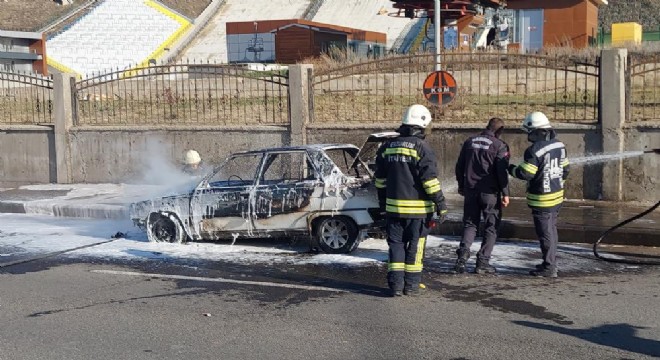 Erzurum'da seyir halindeki araç bir anda alev topuna döndü. Araçtaki 4 kişi son anda çıkarak canlarını kurtardı.