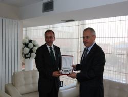 Kültür Yolu Projesi ile ilgili olarak gelinen son durumun da değerlendirildiği görüşmede Kalkınma Bakan Yardımcısı Ceylan ve beraberindeki heyete Büyükşehir Belediye Başkanı Ahmet Küçükler tarafından Oltu Taşı tespih hediye edildi.