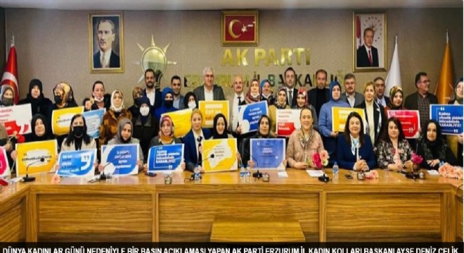 Dünya Kadınlar Günü nedeniyle bir basın açıklaması yapan AK Parti Erzurum İl Kadın Kolları Başkanı Ayşe Deniz Çelik, “Bugün azimle, kararlılıkla, emeğiyle mücadele veren emekçi kadınların günü. 8 Mart vesilesiyle emekçi tüm kadınları selamlıyorum.” dedi.