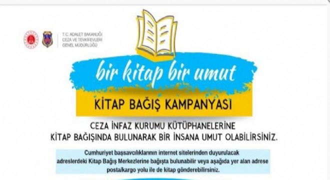 Adalet Bakanlığı ile Kültür Turizm Bakanlığı arasında imzalanan "Ceza İnfaz Kurumu Yerleşkelerinde Kütüphane Kurulmasına İlişkin İş Birliği Protokolü" kapsamında "Ceza Evi İnfaz Kurumu Kütüphaneleri İçin Kitap Bağış Kampanyası" düzenlenecek.