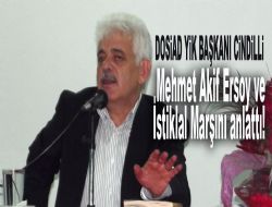Ardından İstiklal Marşı’nı salondakilerle birlikte okuyan Muammer Cindilli, İstiklal Marşı’nın yazılma sürecini anlattı. Cindilli, “Mehmet Akif Bey, askerlerimizi şevklendirmek için Maârif Vekaleti (Eğitim Bakanlığı) tarafından düzenlenen şiir yarışmasına para ödülü sebebi ile iştirak etmemişti. Yarışmaya 724 şiir gelmiş ve hiçbiri istenilen özelliklere sahip olmadığından kabul edilmemişti. İstiklâl mücadelesini ebedileştirecek mısralar, ancak mukaddes değerler uğruna yapılan mücadelenin ruhunu taşıyan ve bunu bütün benliğinde hisseden iman ehli bir şairin kaleminden çıkabilirdi. İlk akla gelen Mehmet Akif Beydi. Maârif Vekili (Eğitim Bakanı) Hamdullah Suphi Bey, Mehmet Akif Ersoy’a bir mektup göndererek katılmamasındaki sebebin ortadan kaldırılacağını ifade ederek ve başka konuları da dile getirerek Mehmet Akif Beyi ikna etti. Bunun üzerine zafere en fazla inanmış ve bu inancı her fırsatta dile getirmiş olan Mehmet Akif Bey, İstiklâl Marşı mücadelesini âbideleştiren şiiri yazdı. Bu şiir TBMM tarafından oylanarak İstiklal Marşı olarak kabul edildi. Sırtında paltosu olmayan Mehmet Akif Bey ödülü şehit ailelerinin çalıştığı bir vakfa bağışlamıştı.” diye konuştu.
