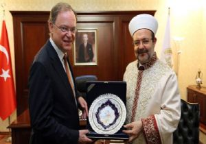 Diyanet İşleri Başkanı Prof. Dr. Mehmet Görmez, Almanya'nın Aşağı Saksonya Eyaleti Başbakanı Stephan Weil'i makamında kabul etti. Diyanet İşleri Başkanı Görmez, kabulde yaptığı konuşmada, Weil'ın yurt dışındaki Türk vatandaşlarının ve Diyanetin hafızasında çok müspet bir yerinin olduğunu söyledi.