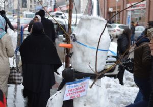 Erzurum’un en işlek caddelerinden biri olan Cumhuriyet Caddesi’nde bir esnaf tarafından yapılan kardan adam ve üzerindeki asılı “fotoğraf çektirmek beleş” yazısı yoldan geçen vatandaşların ilgi odağı haline geldi.