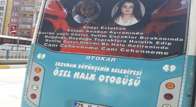 Erzurum’da bir sürücü otobüsün arka camını Leyla ve Eylül’ün fotoğrafları ile kapladı