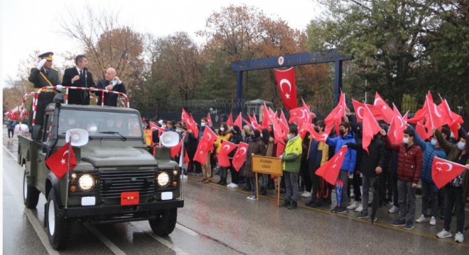 Tören sırasında aniden bastıran yağmur ise vatandaşlara engel olmadı. Şemsiyesini ve yağmurluğunu giyinen vatandaşlar tören alanına koştu. Bebek arabasında alana çocuklarını getiren aileler ise töreni yağmura rağmen ellerindeki bayraklarla takip ettiler.