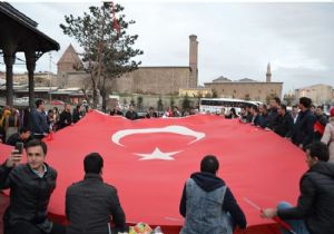 Çanakkale Savaşı’nın 101. Yıl dönümünde 1000 kişi yüz elli metre uzunluğundaki dev Türk Bayrağı eşliğinde Karskapı Şehitliği’ne yürüdü. Narmanlı Camii’nde sabah namazının ardından katılıcılara ayran çorbası ikram edildi. Vatandaş, ‘Bir ölüp bin diriliriz’ sloganı ve mehter gösterisi ile şehitleri andı.