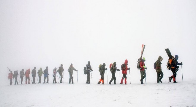 Sabah erken saatlerde başlayan yoğun kar yağışı ve tipiye rağmen yürüyen dağcılar, kar üzerinde sabah kahvaltısı da yaptı. Ardından yürüyüşe geçen dağcılar, 2 bin 750 rakımlı Gökçe Dağ zirvesine ulaştı. 18 sporcuyla gerçekleştirilen yürüyüş, 18 Mart Çanakkale Şehitleri ve Ulu Önder Mustafa Kemal Atatürk'e armağan edildi.