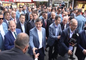 Havalimanındaki karşılamanın ardından konvoy eşliğinde şehir merkezine gelen Başbakan Davutoğlu, Cumhuriyet Caddesi üzerinden otobüsten halkı selamlayarak Taşmağazalar Caddesi'ne geçti. Burada vatandaşların yoğun ilgi ve sevgi gösterileri ile karşılanan Başbakan Davutoğlu, yaya olarak kuyumcu esnafını ziyaret etti. Tek tek iş yerlerine giren Başbakan Davutoğlu esnafla sohbet etti.