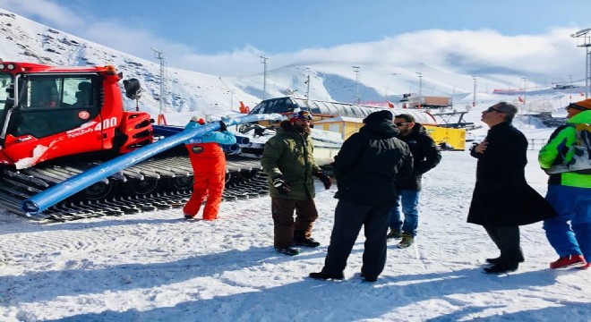 Nefes kesecek olan yarışlar için hazırlanan pistlerin yapım çalışmasını yerinde görmek için Palandöken Kayak Merkezi’ne giden Gençlik Hizmetleri ve Spor İl Müdürü Fuat Taşkesenligil ile Spor Şube Müdürü Güngör Şenses, pist yetkililerinden çalışmalar hakkında bilgi aldı.