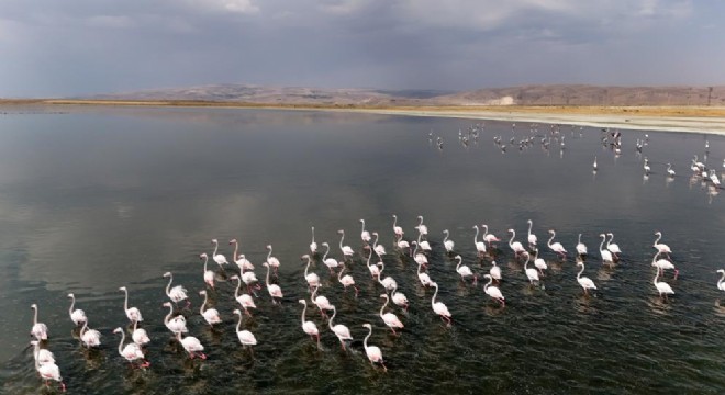 Bitlis’in Adilcevaz ilçesine bağlı Akçıra ve Yarımada köylerinin Van Gölü sahilleri, flamingolara ev sahipliği yapıyor.