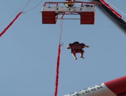 Ordu Caddesi’nde kurulan sistemde bir vince bağlı halatlar yardımıyla yaklaşık 100 metre yüksekliğe çıkartılan sistemin, 30 metre aşağısına iplerle bağlanan ağ havuzu bulunuyor. Özellikle gençlerin büyük ilgi gösterdiği ve vatandaşların merakla izlediği etkinlik gün boyunca devam ederken, kısa adı SCAD olan serbest düşüş 30 metre yükseklikten atılan bir kişi yaklaşık 3-4 saniye sonra altına bulunan ağın içerisine düşüyor. Etkinliğe katılan gençler adrenalin dolu dakikalar yaşadıklarını söylediler.