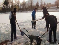 BİTLİS (İHA) - Bitlis’i Bölgesel Amatör Lig’de (BAL) temsil eden tek takım olan Tatvan Gençlerbirliği Spor oyuncuları, kardan temizletilmeyen sahalarını kendileri temizliyor.