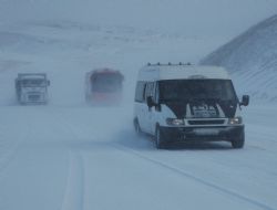 Yurdu etkisi altına alan ağır kış şartları Van’da da hayatı olumsuz yönde etkilemeye devam ediyor. Önceki gün akşam saatlerinde başlayan kar yağışı ve tipi yüksek kesimlerde etkili oluyor. Van-Hakkari karayolu üzerinde bulunan 2225 rakımlı Kurubaş Geçidi ile aynı güzergahta bulunan 2730 rakımlı Güzeldere Geçi’nde trafik olumsuz yönde sürücüler etkilenirken, Karayolları 11 Bölge Müdürlüğü ekipleri, Van’ı çevre il ve ilçelere bağlayan 4 ayrı güzergahta çalışmalarını aralıksız sürdürüyor.