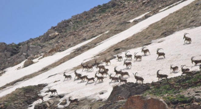 Tunceli’nin Munzur dağlarında anne ve yavru ayılar ile sürü halindeki şamualar (yaban keçileri) görüntülendi.