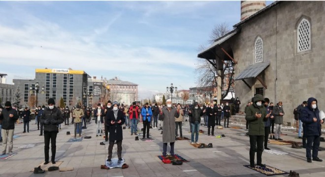 Erzurum’da tarihi Lala Paşa Camii'nde de cuma namazı sonrası yağmur duası yapıldı. Sosyal mesafe kurallarına uygun olarak kılınan namazın ardından vatandaşlar yağmur duası etti. Cami içerisinde yaşanan yoğunluğun yanı sıra soğuk havaya rağmen çok sayıda vatandaş da cami avlusunda açık alanda cuma namazını kıldı, yağmur duasına katıldı.