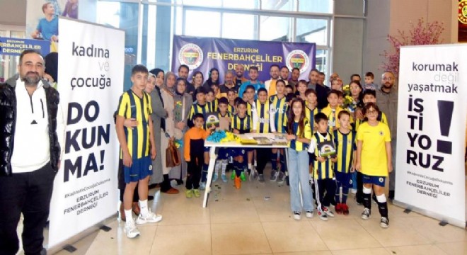 Kadınlara ve çocuklara yönelik artan şiddet olaylarına Erzurum Fenerbahçeliler Derneği (ERFEDER) Sosyal Sorumluluk Projesi kapsamında 'Kadına ve Çocuğa Dokunma', Korumak Değil Yaşatmak İstiyoruz' temasıyla kurulan stantta kadınlar ve çocuklara uygulanan toplumsal şiddete karşı tepki gösterdi.