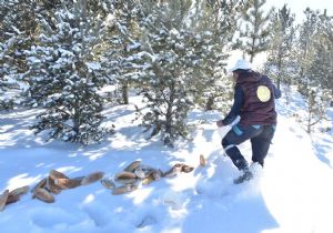 Hava sıcaklığının -35 dereceye kadar düştüğü günlerde Erzurum halk ekmek ekibi belirlenen noktalara hayvanlar için ekmek bıraktı.