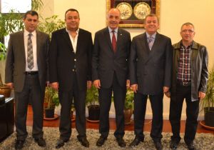 Ziyaretin ardından ATO Yönetim Kurulu Başkanı Bezci ve mesai arkadaşları, Başkan Yücelik’le hatıra fotoğrafı çektirdi.