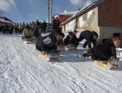 ERZURUM (İHA) - Narman ilçesinde ilköğretim okulunda sınıflar arası kızak kayma yarışması düzenledi. Renkli görüntülere sahne olan yarışmada dereceye giren öğrencilere kitap hediye edildi.