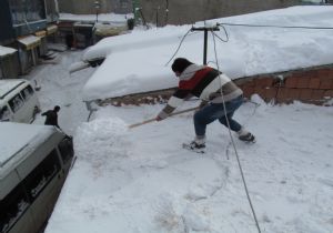 İlçede iki günden beri aralıksız süren kar yağışı, hayatı durma noktasına getirdi. Kar yağışıyla birlikte kar küreğini alan Bülent Özcan, ev ve iş yerlerinin damlarını temizleyerek ekmek parası kazanıyor. İlçeye bağlı Sağdıç köyünde yaşadığını belirten Özcan, kar yağışıyla birlikte küreğini alarak 10 TL’ye damları temizlediğini söyledi. Hiç okula gitmediğini ifade eden Özcan, "Kar yağışı benim için kazançtır. 10 TL karşılığı damları temizleyip para kazanıyorum" dedi.