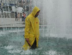 Tarihi Yakutiye Medrese ile Lalapaşa Camisi arasındaki Kent Meydanı’nda bulunan süs havuzunu temizlemek için havuza giren 35 yaşındaki Ahmet Yüksel, “Sıcak havaların gelmesiyle süs havuzları çalıştırılmaya başlandığı için belirli periyotlarda buranın temizlenmesi gerekiyor. Benim işimde bu havuzları temizlemek olduğu için sıcağın ortasında suya girerek serinliyorum. Havuza girip hem havuzu temizliyorum hem de fıskiyelerin ayarlarını yapıyorum. Sıcaklarda vatandaşlar süs havuzunun etrafında gezmeye geldiklerinde beni görüyorlar ve zevkle izliyorlar. Aslında görüldüğü kadar kolay bir iş değil ama onlar sıcaktan bunalırken bende suyun içinde serinliyorum” diye konuştu.