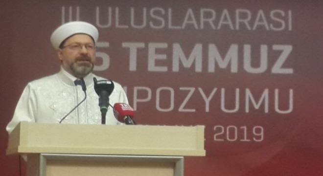 Diyanet İşleri Başkanlığı ve 15 Temmuz Derneği’nin birlikte organize ettiği “3. Uluslararası 15 Temmuz Sempozyumu” Diyanet İşleri Başkanı Prof. Dr. Ali Erbaş’ın katılımıyla düzenlendi. Etkinlikte bir konuşma yapan Diyanet İşleri Başkanı Erbaş, “15 Temmuz ülkemizin maruz kaldığı büyük bir ihanet karşısında aziz milletimizin yazdığı onurlu bir destanın yıl dönümüdür. 15 Temmuz 2016 tarihinde kirli dünyasını yüce dinimiz İslam’ın ilke ve değerleri arkasına gizleyen terör şebekesi FETÖ vatanımıza, milletimize, birliğimize, istiklal ve istikbalimize kastetmiştir” şeklinde konuştu.