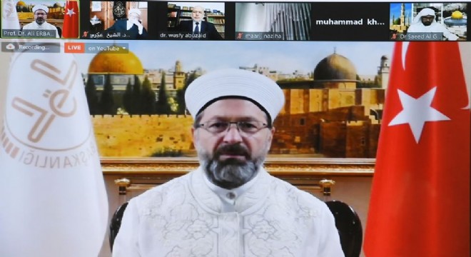 Diyanet İşleri Başkanı Erbaş, video konferans sistemi üzerinden gerçekleştirilen buluşmada, Kudüs’ün insanlığın en köklü mirasına ve tarihi serüvenine tanıklık eden evrensel bir değer olduğunu ifade ederek, “İslam medeniyetinin tarihsel bilgi ve değerler hafızasıdır. Bu itibarla Müslümanların hayatında vazgeçilmesi asla mümkün olmayan mübarek bir şehirdir” ifadelerini kullandı.