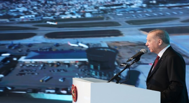 Erdoğan, "Havacılık alanında büyük bir dönüşüm gerçekleştirdik. Aktif havalimanı sayımızı 26'dan 57'ye, terminal kapasitemizi 55 milyon yolcudan 337 milyon 450 bin yolcuya çıkarttık." diye konuştu.