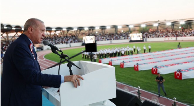 Vatan için canlarını ortaya koyarak, mücadele eden tüm gazilere de şükranlarını sunan Cumhurbaşkanı Erdoğan, şöyle devam etti: "Her birine hayırlı, sağlıklı, bereketli ömürler diliyorum. Şehit ve gazilerimizi yetiştiren anne ve babaların o mübarek ellerinden öpüyorum, her birine hürmetlerimi sunuyorum. Her karışında bir yiğidin yattığı bu topraklar, dünyanın en büyük şehitliğidir. Burası şüheda yurdudur, gaziler otağıdır, erenler diyarıdır. Millet olarak asırlardır şehitlerimizle yaşıyor, şehitlerimizle yürüyoruz. Şehit ve gazilerimizin emanetine, canımız pahasına sahip çıkacağız. Devletimizi, milletimizi, birlik ve beraberliğimizi daha da güçlendirmek için elimizle birlikte gövdemizi de gerektiğinde taşın altına koyacağız. Rabb'im yar ve yardımcımız olsun. Şehitlerimizin asil ruhlarını şahit kılsın. Bugün, Polis Akademimizin farklı birimlerindeki eğitimlerini tamamlayan toplam 8 bin 238 öğrencimizi mezun ediyor, sevinçlerine ortak oluyoruz. Polis Akademisi Eğitim Merkezinden 162, Polis Meslek Yüksek Okulumuzdan 2 bin 441, Polis Meslek Eğitim Merkezimizden de 5 bin 604 kardeşimiz, yeni görevlerine başlamak üzere emniyet teşkilatımızın kadrolarına katılıyor. Milletimizin huzur ve emniyeti için yüksek bir vazife şuuruyla çalışacak siz kardeşlerimi ayrı ayrı tebrik ediyorum. Her birinize şimdiden üstün başarılar diliyorum. Aynı şekilde Azerbaycan, Endonezya, Filistin, Kırgızistan, Kongo, Maldivler, Moğolistan, Ruanda ve Somali'den gelerek burada öğrenim gören 32 öğrencimizi de tek tek kutluyorum. Akademide edindikleri bilgi ve tecrübeleri ülkelerinin polis teşkilatında en iyi şekilde değerlendireceklerine inanıyorum. Bu kardeşlerimizden ailelerine, arkadaşlarına, dostlarına bizden kucak dolusu selam götürmelerini de hassaten rica ediyorum."