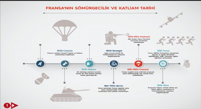 Cumhurbaşkanlığı İletişim Başkanı Altun, sosyal paylaşım sitesi Twitter hesabından, “Cumhurbaşkanımız Recep Tayyip Erdoğan A Haber ortak yayınında sözde Ermeni soykırımı bahanesiyle ülkemizi suçlayan Fransa Cumhurbaşkanına Fransız tarihinden soykırım ve işgal örnekleriyle cevap verdi” dedi. Altun, ayrıca şemayı da yayımladı.