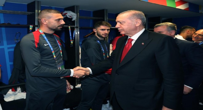Türkiye-Hollanda maçını stadyumda izleyen Cumhurbaşkanı Recep Tayyip Erdoğan, karşılaşmanın ardından soyunma odasına inerek milli futbolcuları tebrik etti.