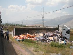 Erzincan’da kola yüklü TIR kontrolden çıkarak devrildi. içecek şişeleri yola saçıldı. Can kaybının yaşanmadığı kazada TIR’da maddi hasar meydana geldi.