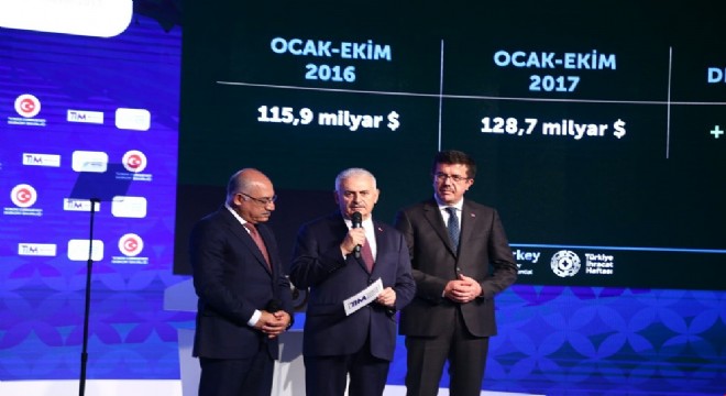 Başbakan Binali Yıldırım, açılış konuşmasında “İhracat ekim ayında yüzde 15,6 oranında artarak 13,5 milyar dolara ulaştı. Bu rakam tüm zamanların en yüksek ekim ayı ihracatı. Bu oran ise son 10 yılın en yüksek ekim ayı artış oranı. TİM verilerine göre ekim ayı ile birlikte son 12 aydır aralıksız artış açıklıyoruz. Bu yılın ilk 10 ayında ihracatımız yüzde 11 artarak 128,7 milyar dolara ulaştı. Son 12 aylık ihracatımız da yüzde 10,7 artarak 154,2 milyar dolar oldu” dedi.