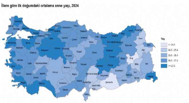 lk doğumdaki ortalama anne yaşının en düşük olduğu iller ise 24,4 ile Şanlıurfa ve Muş oldu. Bu illeri 24,5 yaş ile Ağrı, 25,2 yaş ile Gaziantep izledi.