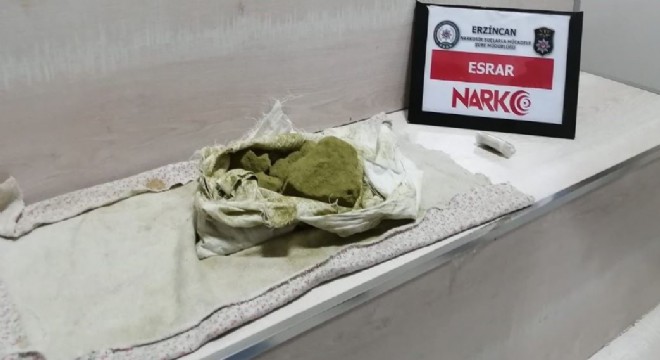 Erzincan İl Emniyet Müdürlüğüne bağlı Narkotik Suçlarla Mücadele Şube Müdürlüğü görevlilerince uyuşturucu madde kullanımının ve ticaretinin önlenmesine yönelik yürütülen çalışmalar kapsamında; Erzurum-Erzincan karayolu üzerindeki Akyazı mevkiinde 34 plakalı araç durduruldu. Araç sürücüsü Y.E.B. (30) isimli şahıs üzerinde yapılan üst aramasında 4,80 gram, araçta yapılan aramada ise 402,21 gram olmak üzere toplamda 407,01 gram toz esrar maddesi ele geçirildi.