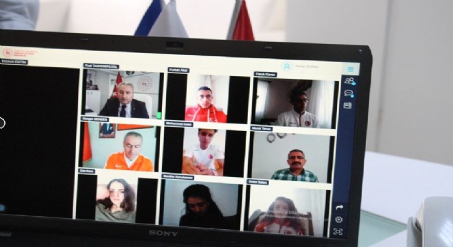 Erzurum Gençlik ve Spor İl Müdürü Fuat Taşkesenligil, kurmayları ve olimpiyat havuzundaki milli sporcularla video konferans yaptı.