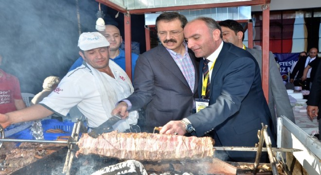 Gümrük ve Ticaret Bakanı Bülent Tüfenkçi’nin de katıldığı açılış töreninin ardından, Antalya Valisi Münir Karaloğlu, Antalya Büyükşehir Belediye Başkanı Menderes Türel, Türkiye Odalar ve Borsalar Birliği (TOBB) Başkanı Rifat Hisarcıklıoğlu, Antalya Ticaret ve Sanayi Odası (ATSO) Yönetim Kurulu Başkanı Davut Çetin, Antalya Ticaret Borsası (ATB) Yönetim Kurulu Başkanı Ali Çandır ile bazı milletvekilleri ve gazeteci Yavuz Donat şehirlerin stantlarını gezdi. Fuar alanının girişinde, Erzurum Cağ Kebabı’nın yapıldığı standı ziyaret eden TOBB Başkanı Rifat Hisarcıklıoğlu, ETSO Meclis Başkanı Saim Özakalın’la birlikte cağ kebabı kesti. Hisarcıklıoğlu ve beraberindekiler daha sonra 10 bin metrekare kapalı alana sahip fuar merkezindeki Erzurum standını gezdi. Burada ETSO Meclis Başkanı Saim Özakalın ve Yönetim Kurulu Üyesi Zeki Adil’le bir süre sohbet eden Hisarcıklıoğlu’na stantta, Erzurum’un ve bölgenin en büyük et entegre tesislerinden biri olan Oral Et Entegre A.Ş. Yönetim Kurulu Başkanı Hakan Oral tarafından Erzurum sucuğu tattırıldı. Sucuğun tadını beğenen TOBB Başkanı Hisarcıklıoğlu, “Erzurum’un, Kayseri’nin, Afyon’un sucuğunun hepsinin lezzetleri farklı bir güzel. Bu ve bunun gibi lezzetleri böyle fuarlarda insanlarımızın beğenisine sunmalı, daha geniş pazarlara açılmalıyız.” diye konuştu.