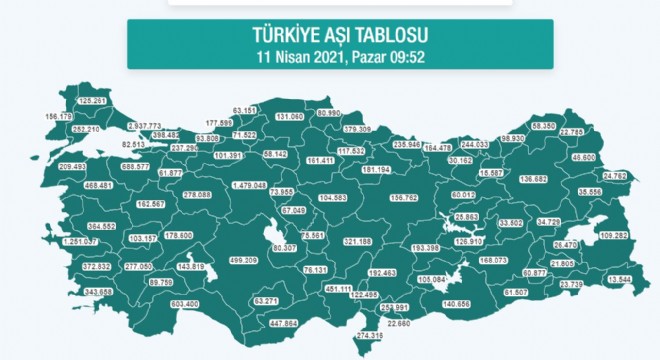 Verilere göre Doğu Anadolu Bölgesi illerinde ilk ve ikinci doz toplamında, gerçekleştirilen aşılama sayısı şöyle: Erzurum136 bin 682, Ardahan 22 bin 785 Kars 46 bin 600, Iğdır 24 bin 762, Ağrı 35 bin 556, Van 109 bin 282, Bitlis 26 bin 470, Hakkari 13 bin 544, Bingöl 33 bin 502 Tunceli 25 bin 863, Erzincan 60 bin 12, Elazığ 126 bin 910, Muş 34 bin 729, Malatya 193 bin 398.